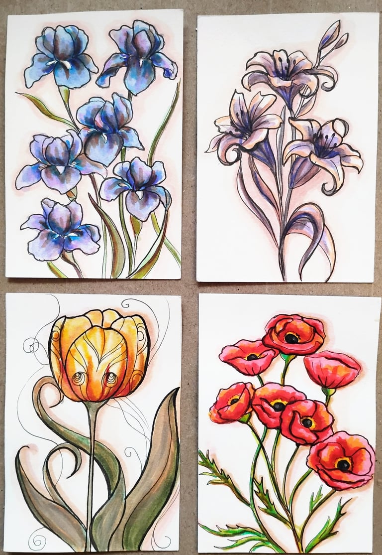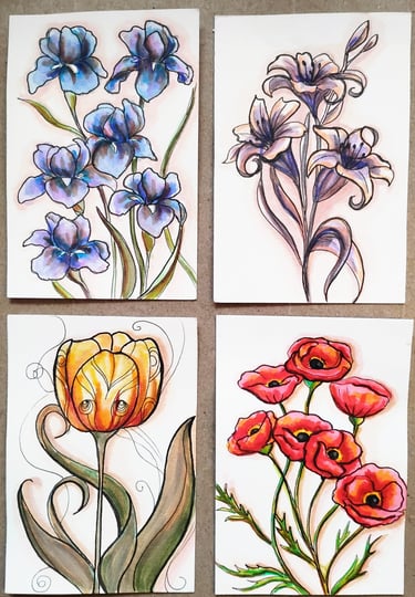 My second work in progress is a more traditional tarot with flowers illustrated in Art Nouveau style. I wanted to offer a deck that was less heavily themed then Tarot Tails and my two oracles. This may have a broader appeal for both professional tarot readers and collectors: