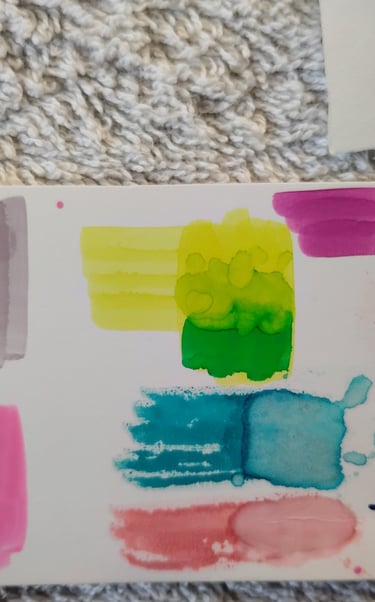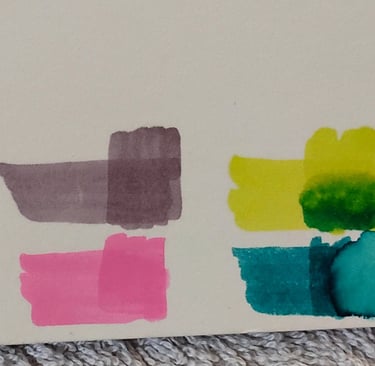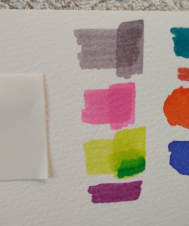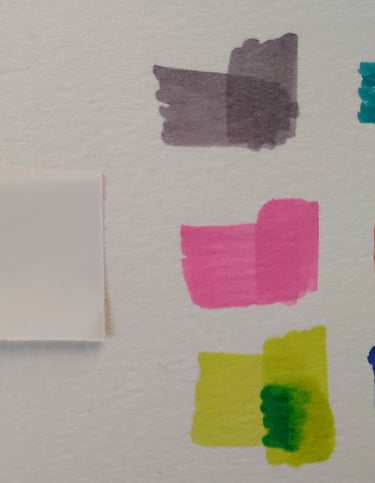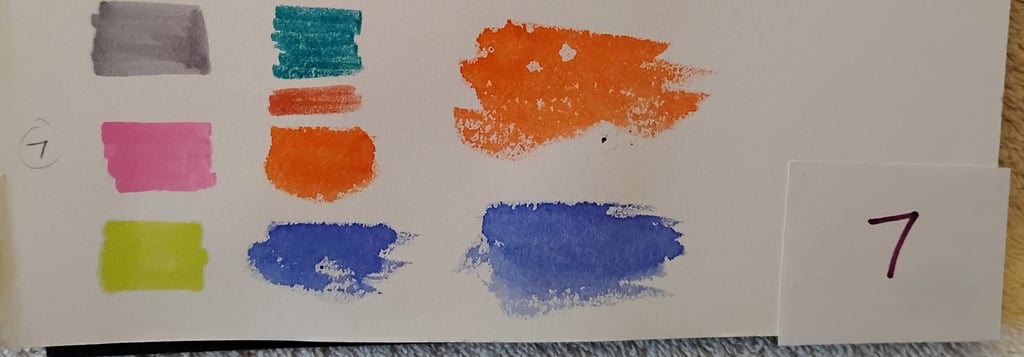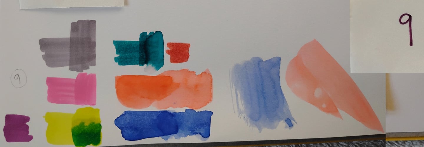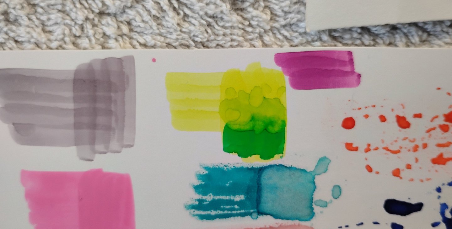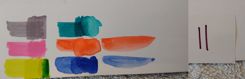 Round 2 summary: the light green was an actual watercolor pencil, the magenta a liquid watercolor brush. Both did quite well. Tube watercolors didn’t but.