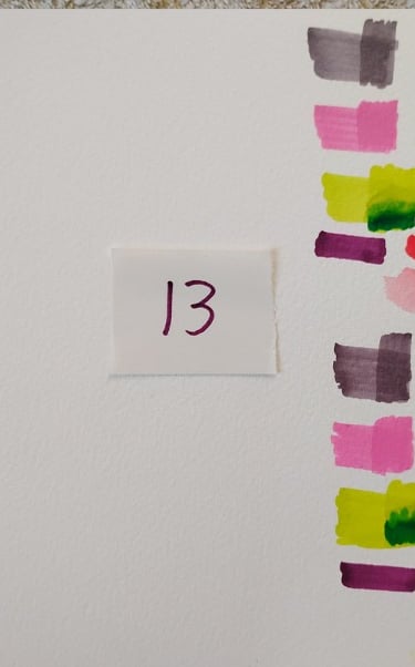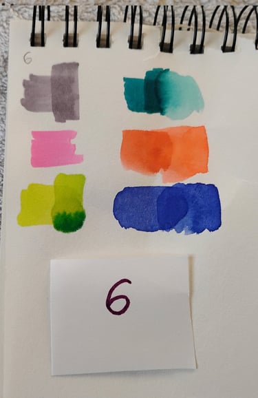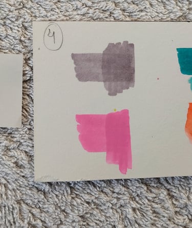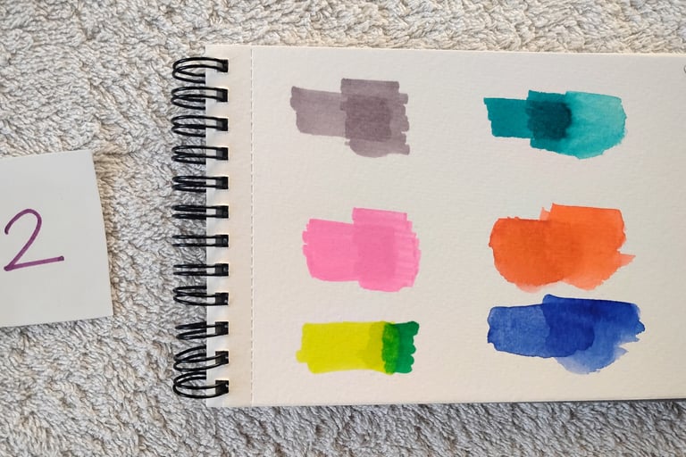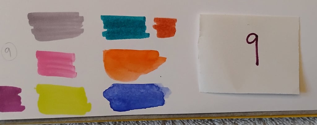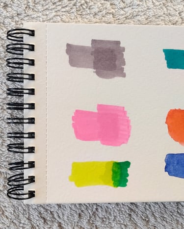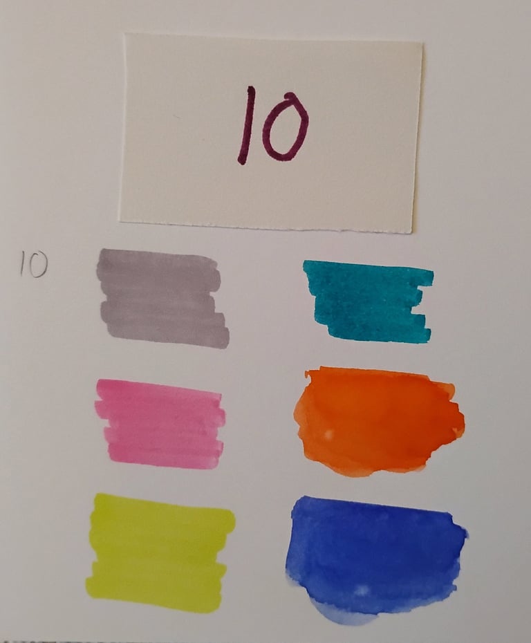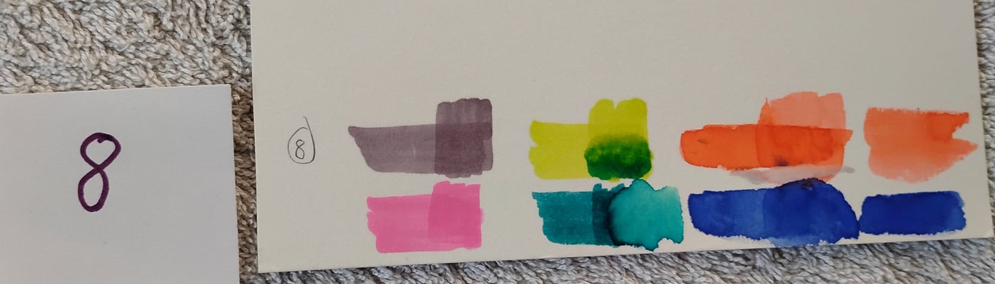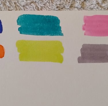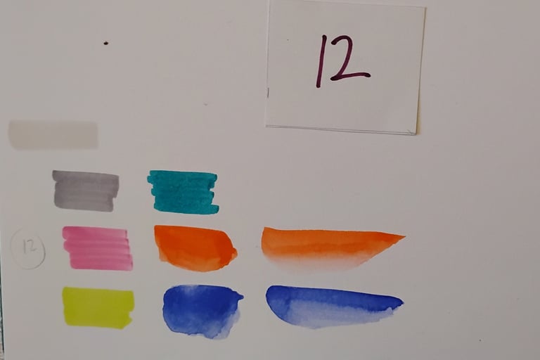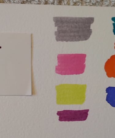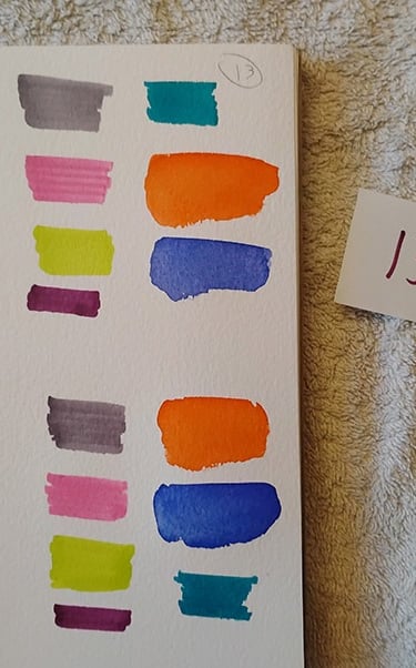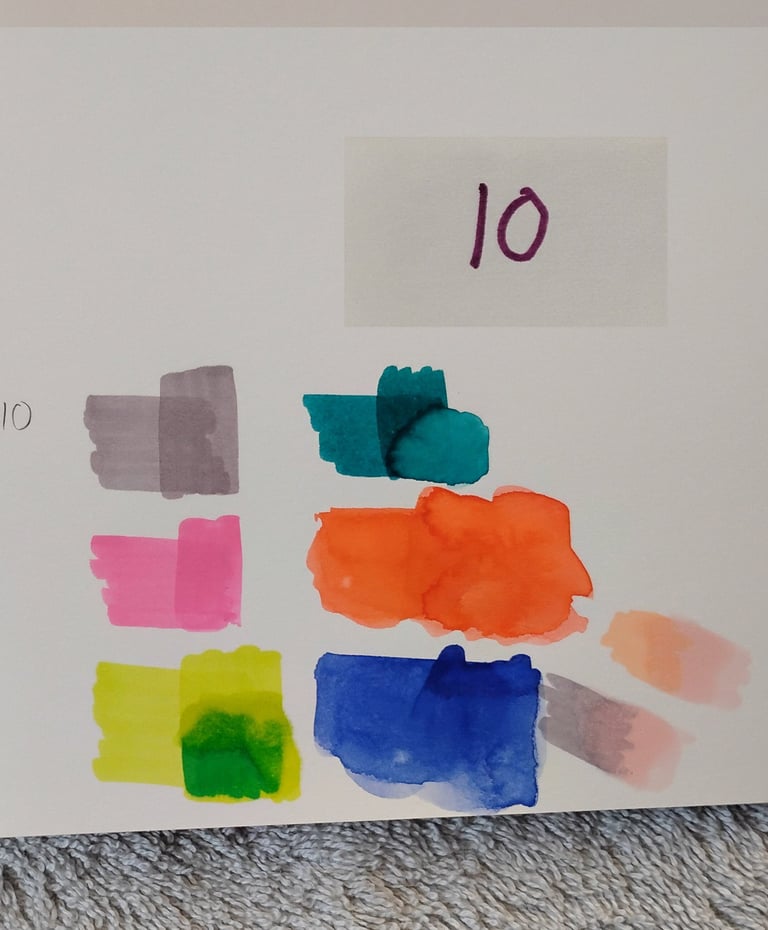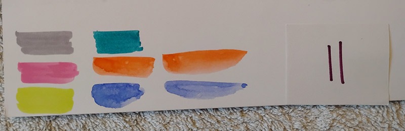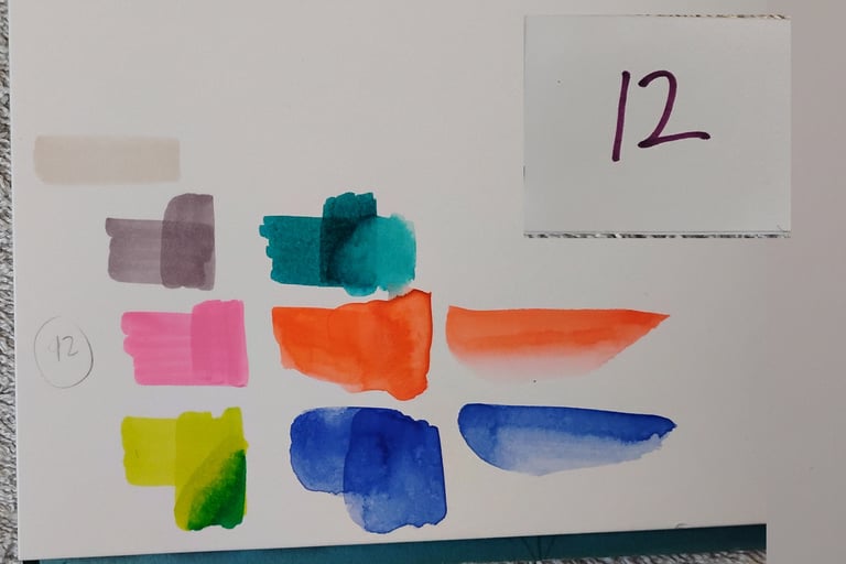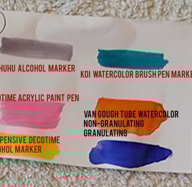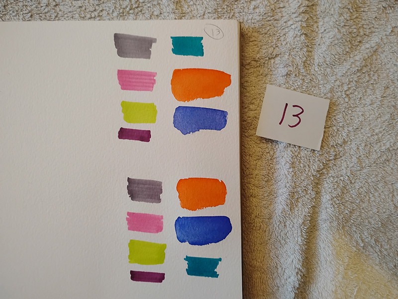 We did two layers of swatches, dried overnight in between. For the second layer and round we were testing blendability, how it performs with multiple layers, and in the case of the water based markers, if it was possible to blend them with a brush and water. Note that not all water based markers are designed to be used with water, but these Koi are very high quality and can be blended very well on the right surface.