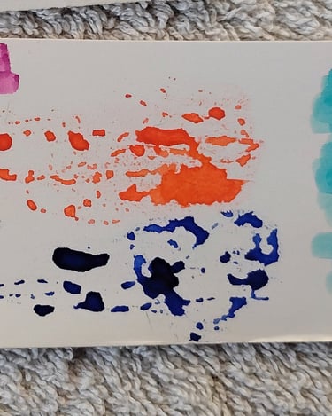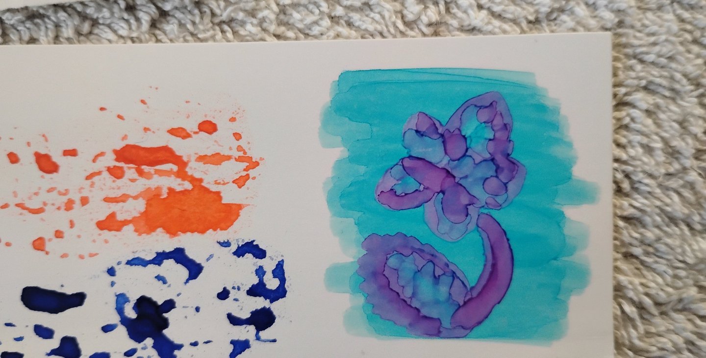Non-granulating watercolor: Watercolor does great on watercolor paper. Round 2: left behind hard edges but that’s not necessarily a bad thing. Pretty good.