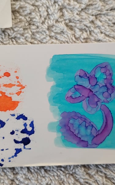 Non-granulating watercolor: Sits on top and there was some sort of coating on the paper that created spots. Round 2: muddy colors, uneven results.