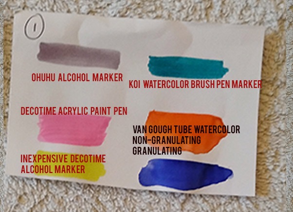 I swatched 14 different types of paper with watercolor, water and alcohol based markers, and acrylic (so you didn’t have to!)